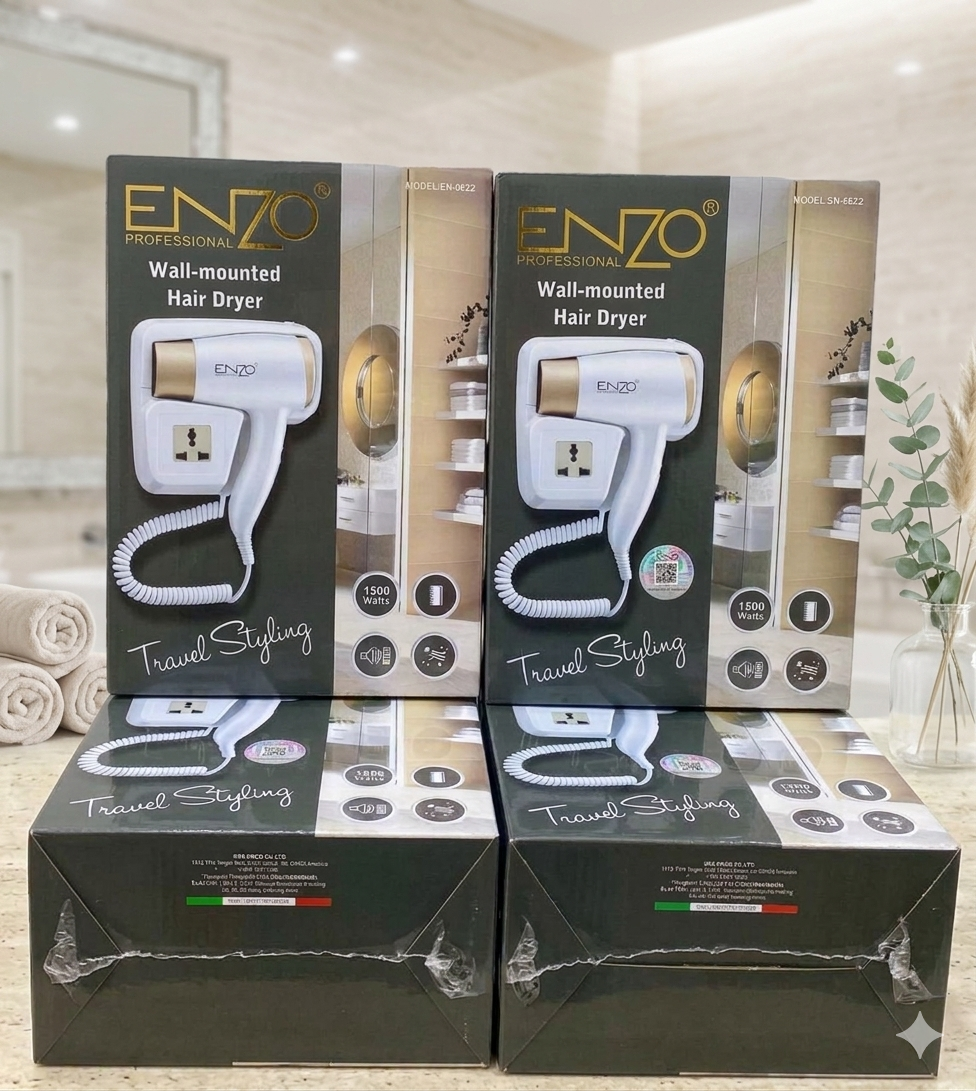 تعبتِ من السشوار اللي ياخذ مساحة في الدرج؟ أو تضيعين وقتك وانتي تدورين على المقبس؟ مجفف ENZO المثبت على الحائط يخلي روتينك اليومي أسرع وأنظم.